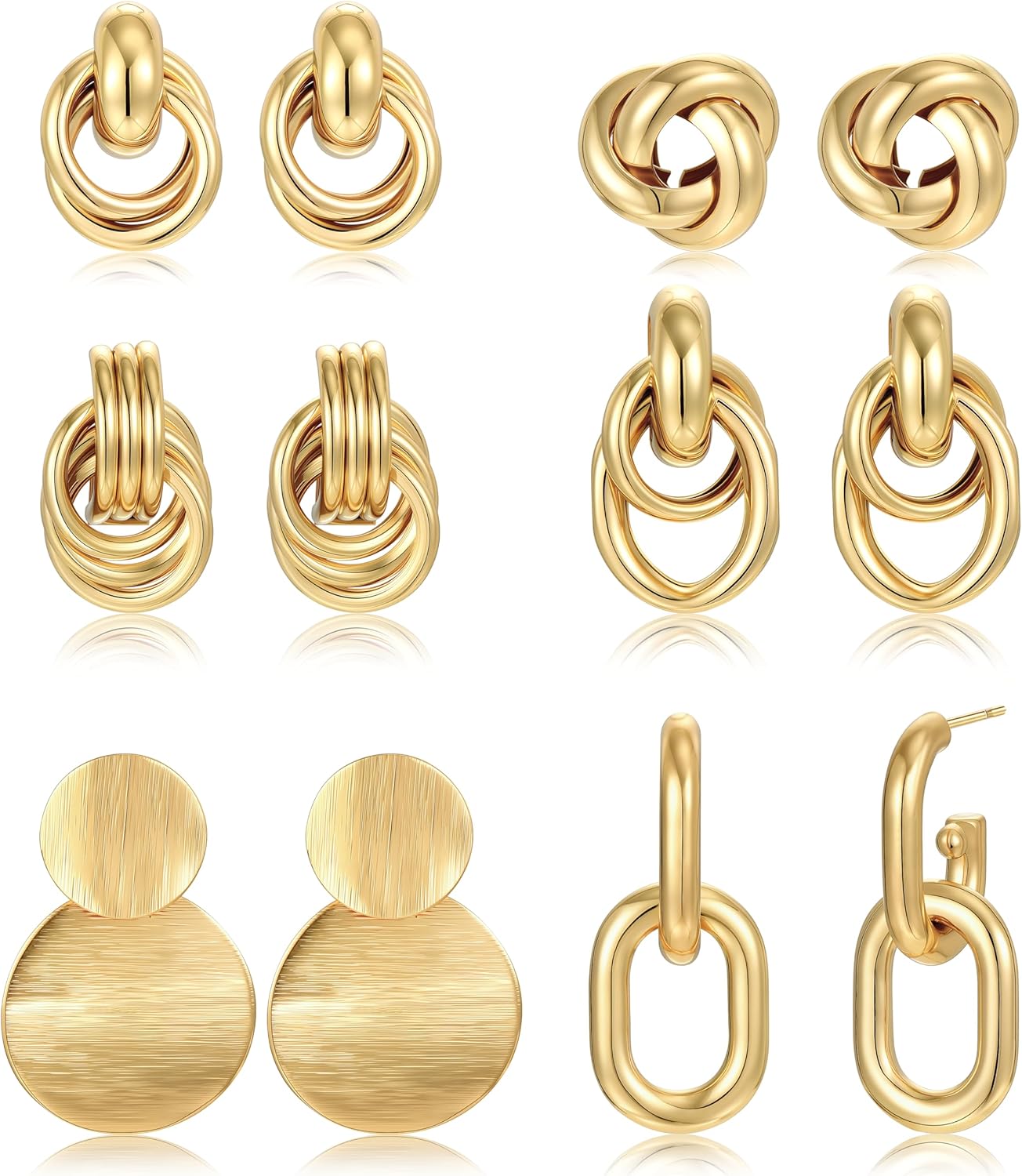 Valentine's Earrings for Women - 6 Pairs Trendy Gold Plated Knot Earrings for Women Chunky Statement Drop Dangle Teardrop Earrings Lightweight Hypoallergenic Fashion Accessories Jewelry Set Gifts
