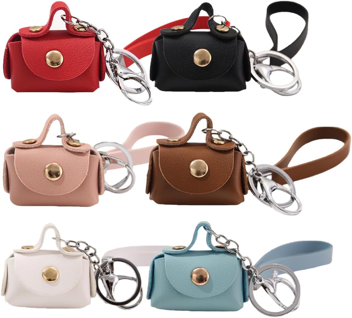 6 Pcs Mini Handbag Keychains, Mini Coin Purse Keyring PU Leather Backpack Key Chain Earbud Bag Charm Pendant for Women