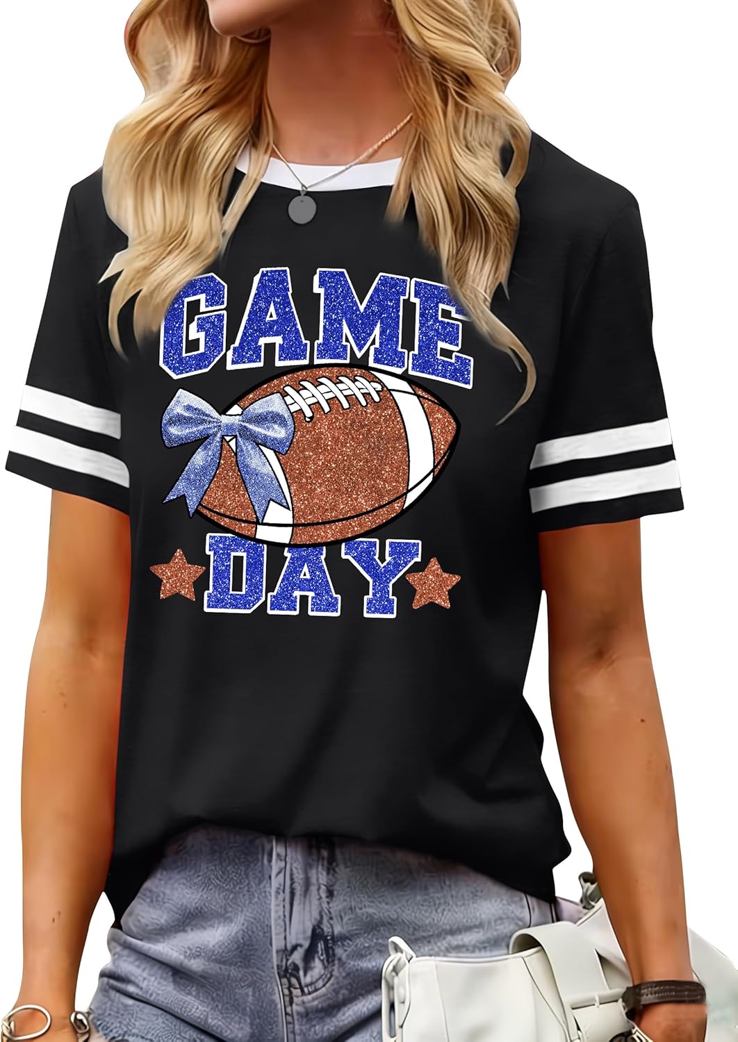 Football Shirts for Women Game Day T Shirt Football Mom Tshirt Sunday Funday Casual Tee Tops