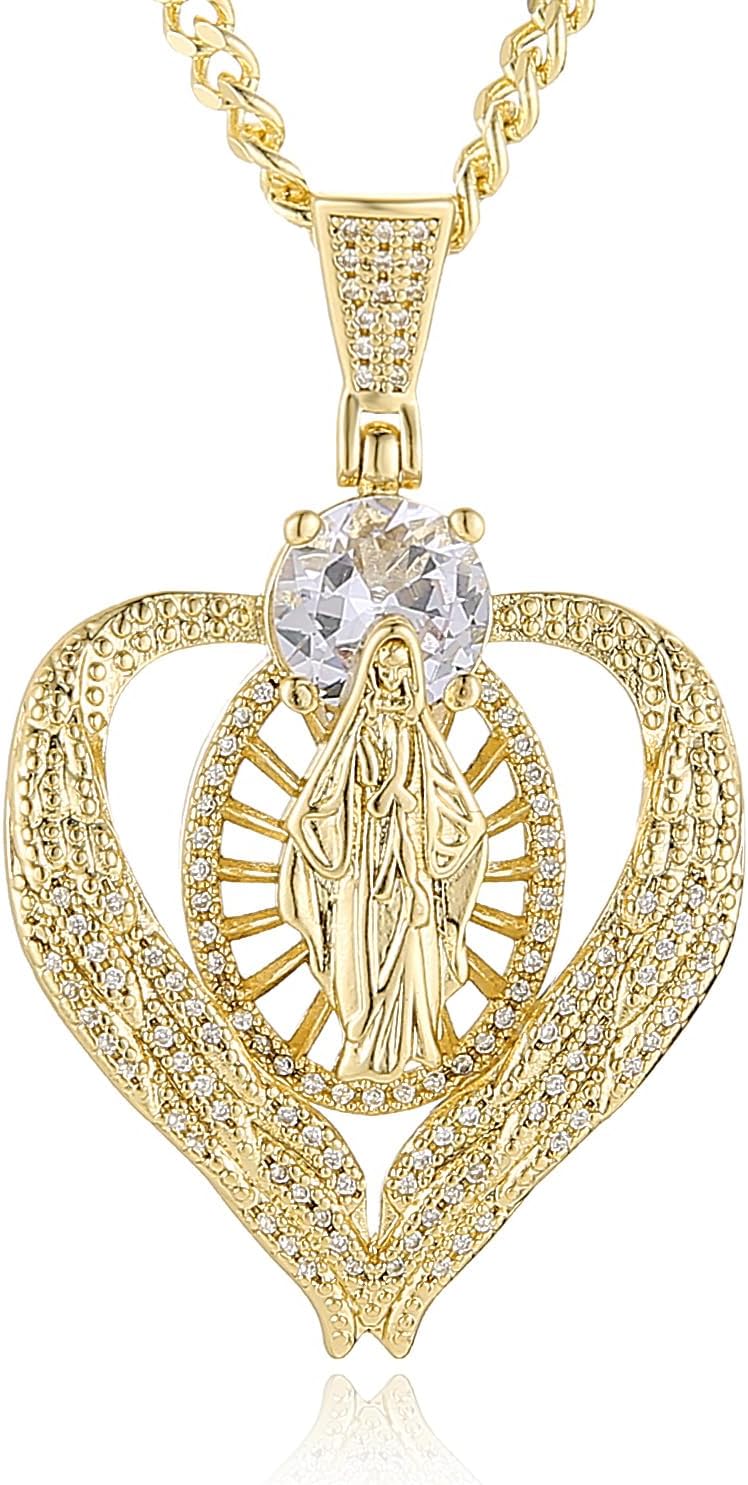 HZMAN Our Lady of Guadalupe Pearl Necklace - Gold-Tone Brass Catholic Rosary Necklace with Virgin Mary Pendant, Dainty Religious Jewelry for Women