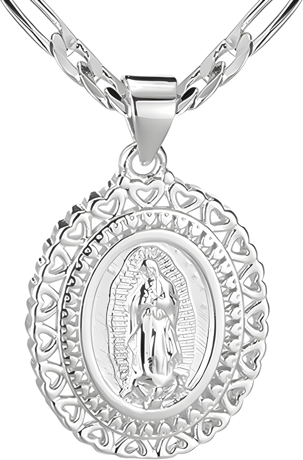 Virgin Mary Necklace for Women, 14K Gold Plated Copper Virgen de Guadalupe Charm Pendant, Valentine Mother's Day Our Lady Blessed Christian Catholic Gifts for Her with Jewelry Box Figaro Chain