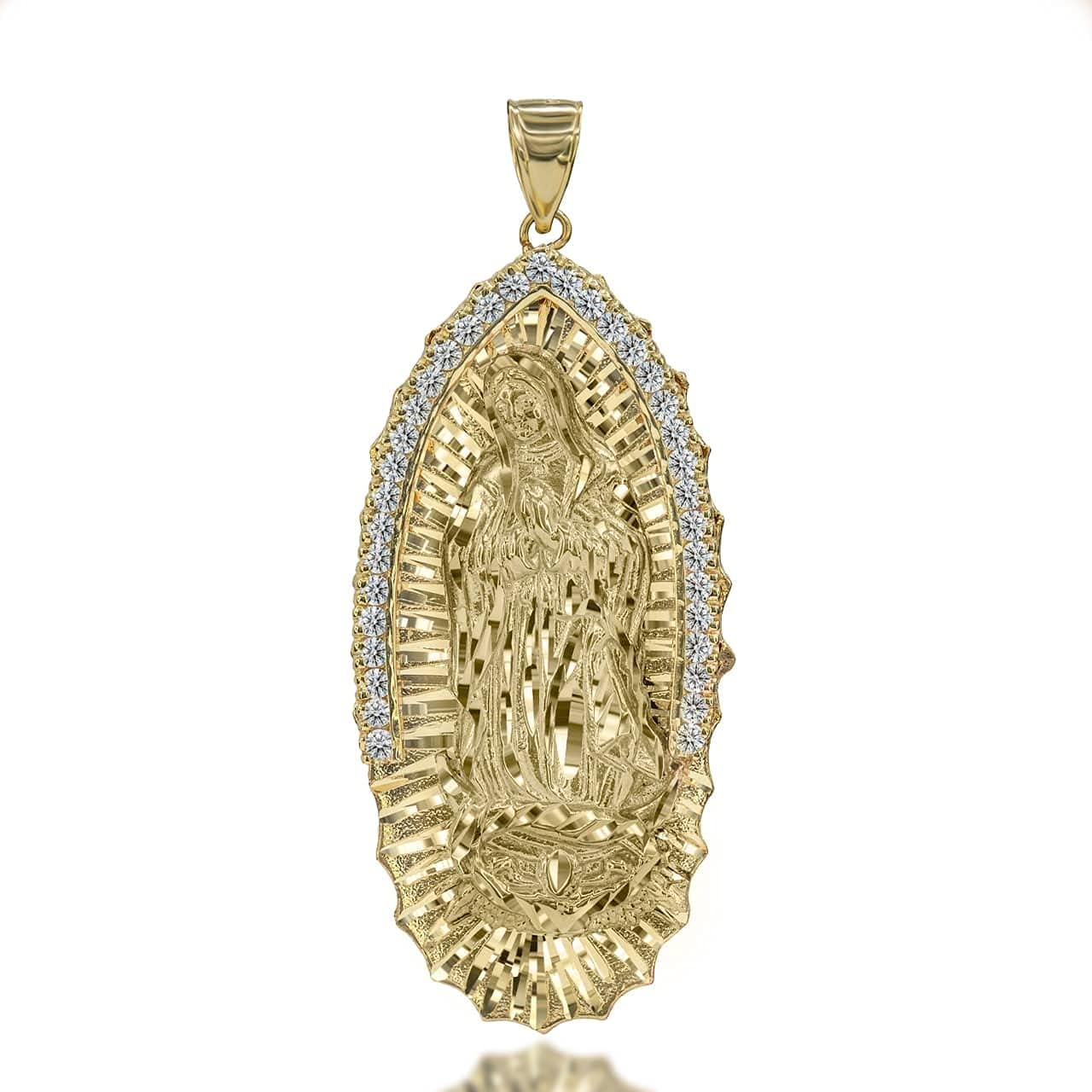 Certified 14k Gold CZ-Studded Our Lady of Guadalupe Pendant (XL)