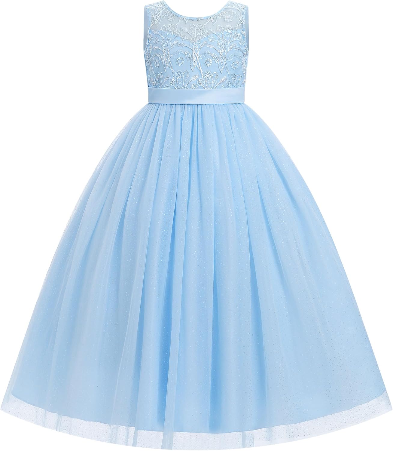 IBTOM CASTLE Flower Girl Sequin Floral Long Tulle Dress Little Girls Formal Birthday Tea Party Wedding Pageant Ball Prom Gown