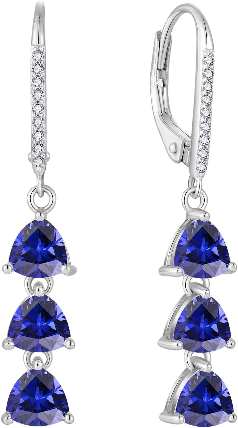 925 Sterling Silver Dangle Birthstone Earrings for Women Dainty Drop Leverback Earrings 5A Cubic Zirconia Jewelry Birthday Gifts for Wife Her