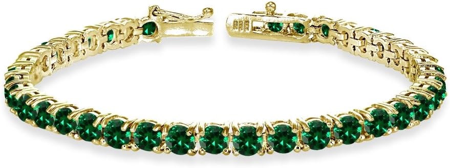 B. BRILLIANT Birthstone Bracelet for Women - 4mm Round-Cut Genuine or Synthetic Gemstone Tennis Bracelet - Sterling Silver or Gold Flash Silver With Gift Box