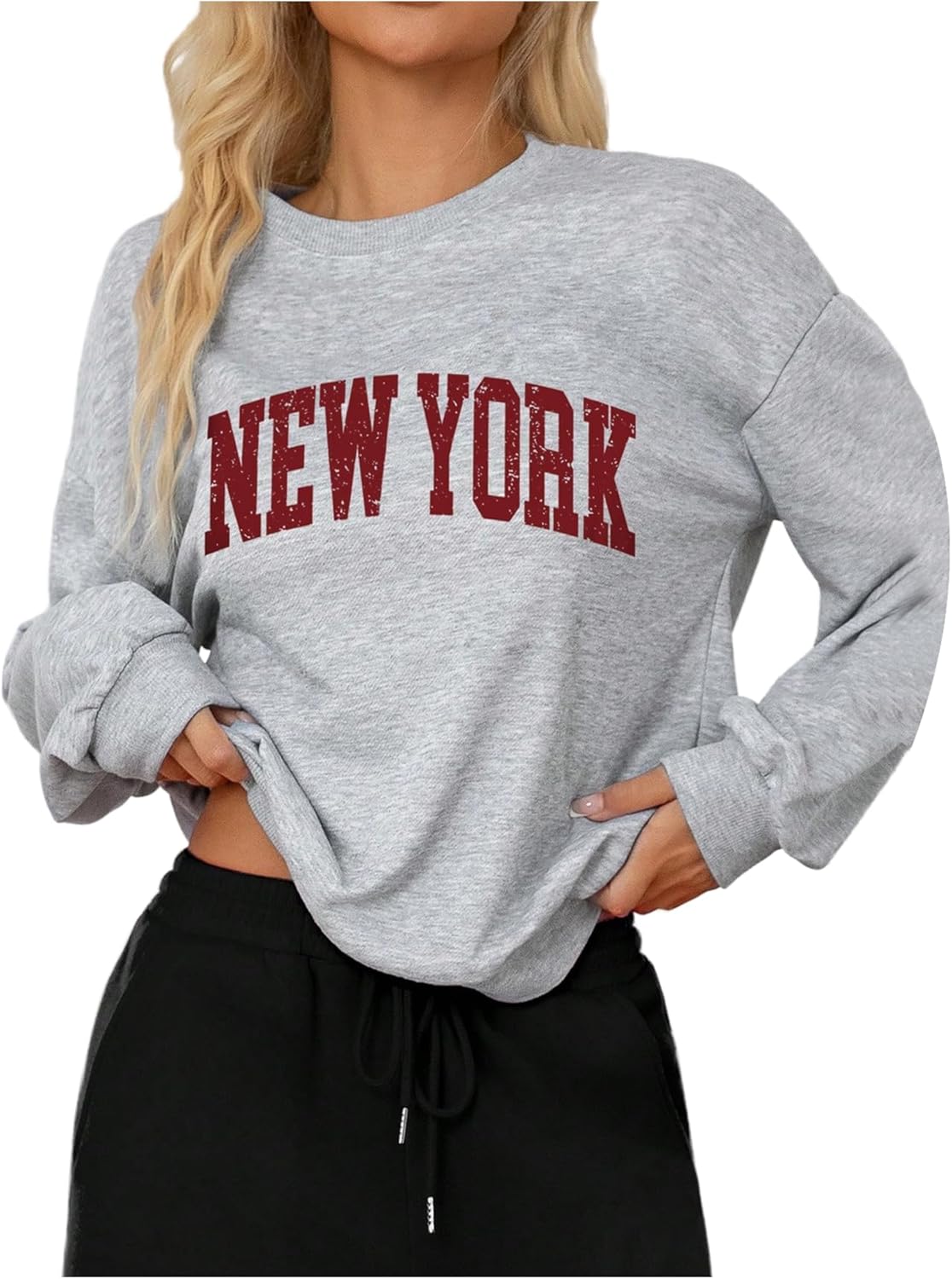 Verdusa Women's Letter Print Crewneck Sweatshirts Streetwear Casual Loose Pullover Tops