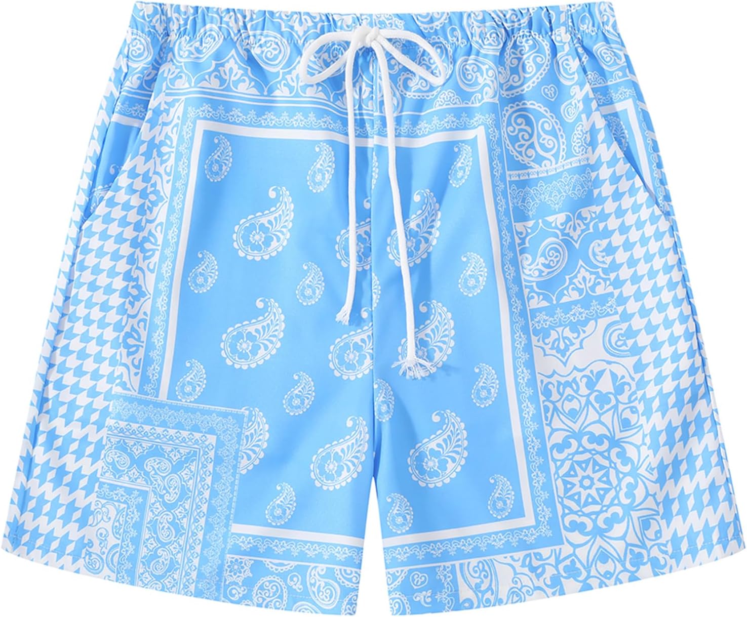 Men's Summer Paisley Shorts Graphic Bandana Print Boho Beach Lightweight Drawstring Shorts with Pockets