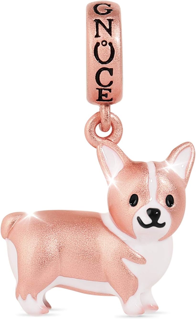 GNOCE Corgi Pendant Charm Sterling Silver Matte 18k Rose Gold Plated Animal Dog Dangle Charm Bead Fit Bracelet/Necklace Christmas Gift for Women Wife