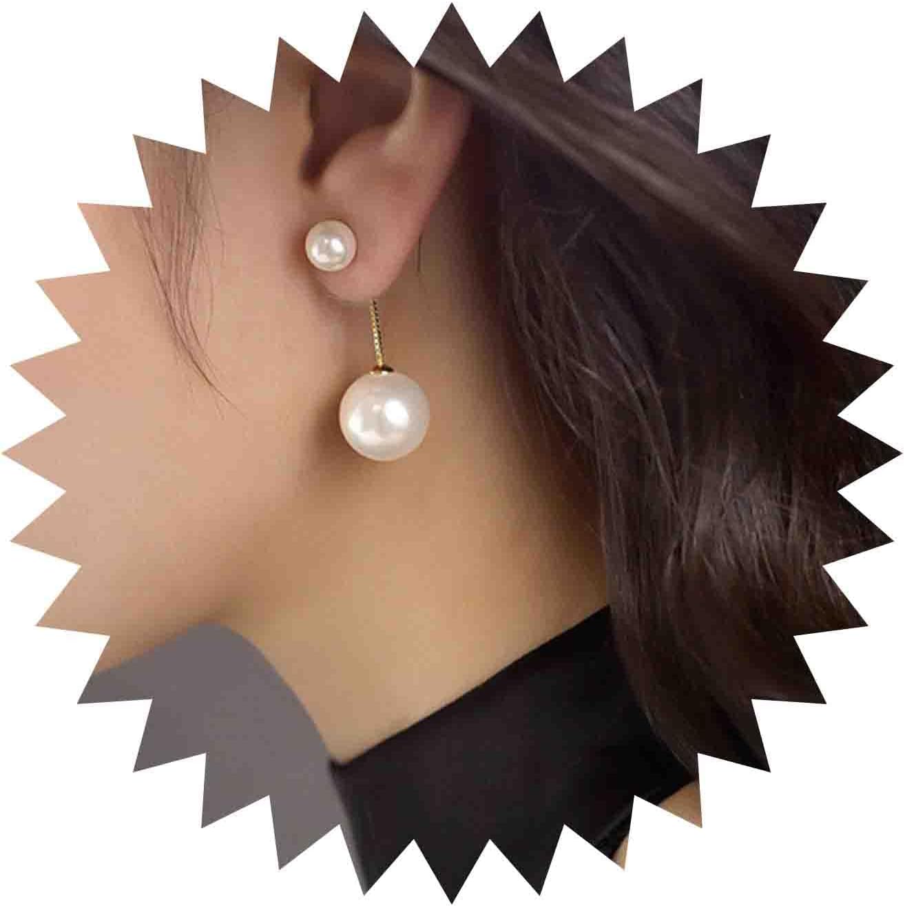 Vintage Pearl Drop Earrings Gold White Pearl Ear Jacket Earrings Double Pearl Stud Earrings Round Pearl Dangle Earrings Pearl Wedding Bridal Earrings Jewelry for Women