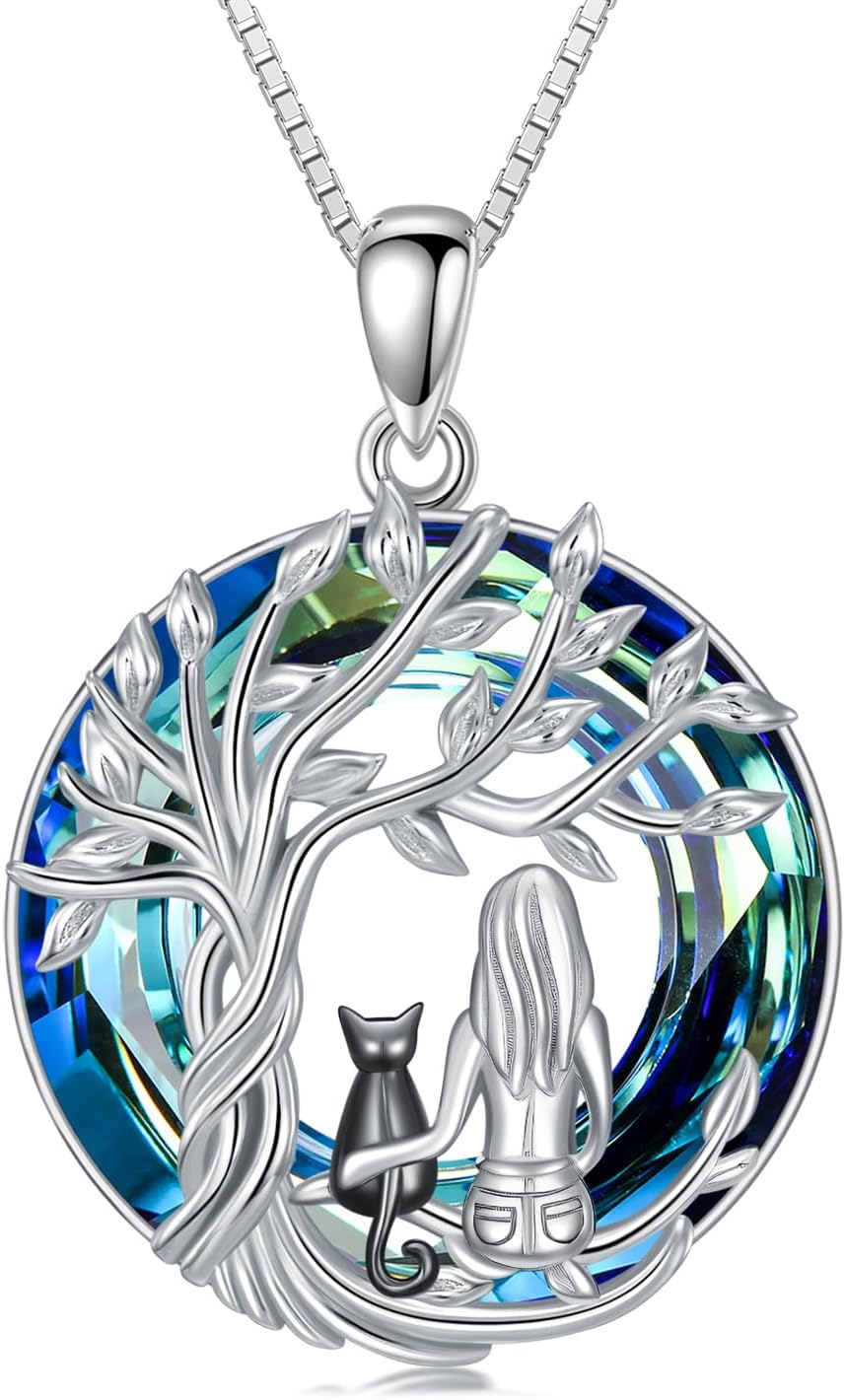 TOUPOP Cat Necklace for Women 925 Sterling Silver Tree of Life Pendant Celtic Knot Cat Jewelry Mother's Day Gifts for Women Daughter Cats Lover