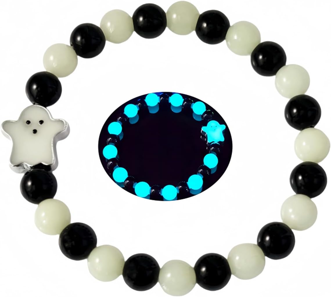 8mm Natural Volcanic Stone Bracelets for Women,Hallowmas Ghost Luminous Bracelets,Lava Stone Glow bracelet,Elastic Stretch Beads Protection Bracelet for Men