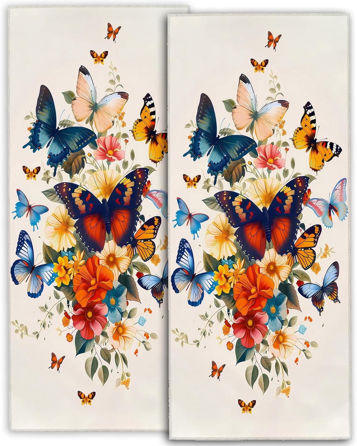 Retro Butterfly Floral Hand Towels - 2 Pack, 14.5" X 28",Soft Microfiber Polyester Vintage Towel Set with Vibrant Butterfly Flower Pattern,for Classic Bathroom Kitchen Spa Hotel Decor Gifts