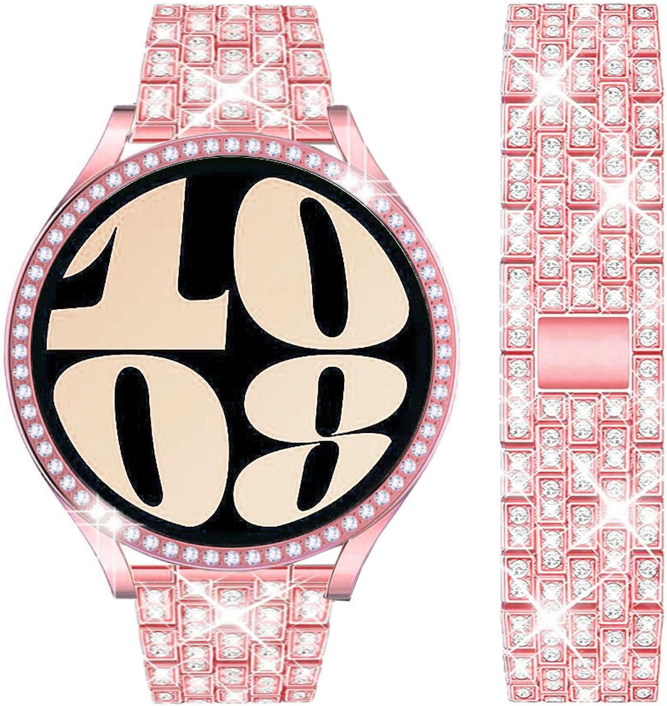 Bands Compatible with Samsung Galaxy Watch 6 40mm / 44mm / Galaxy 6 Classic 43mm / 47mm, 20mm Bling Rhinestone Metal Strap with Diamond protective case Replacement for Women Men (Rose pink)