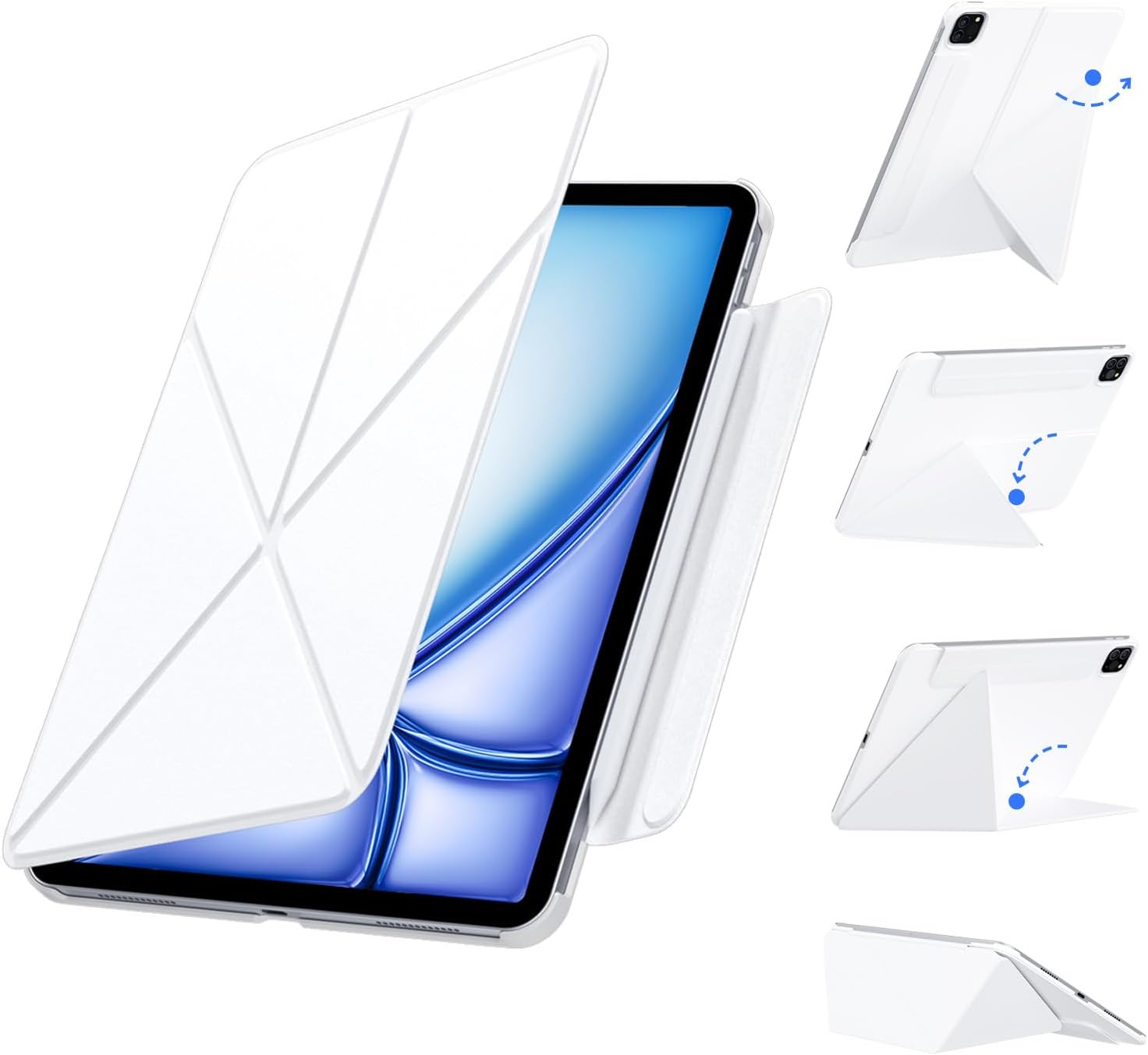 Magnetic Cover for iPad Air 11-inch (M3/M2, 5th/4th Gen) & iPad Pro 11-inch (2022/2021/2020), Stain-Resistant Slim Folio with Portrait/Landscape Stand, 4 Adjustable Angles, Cover Auto Wake/Sleep,White
