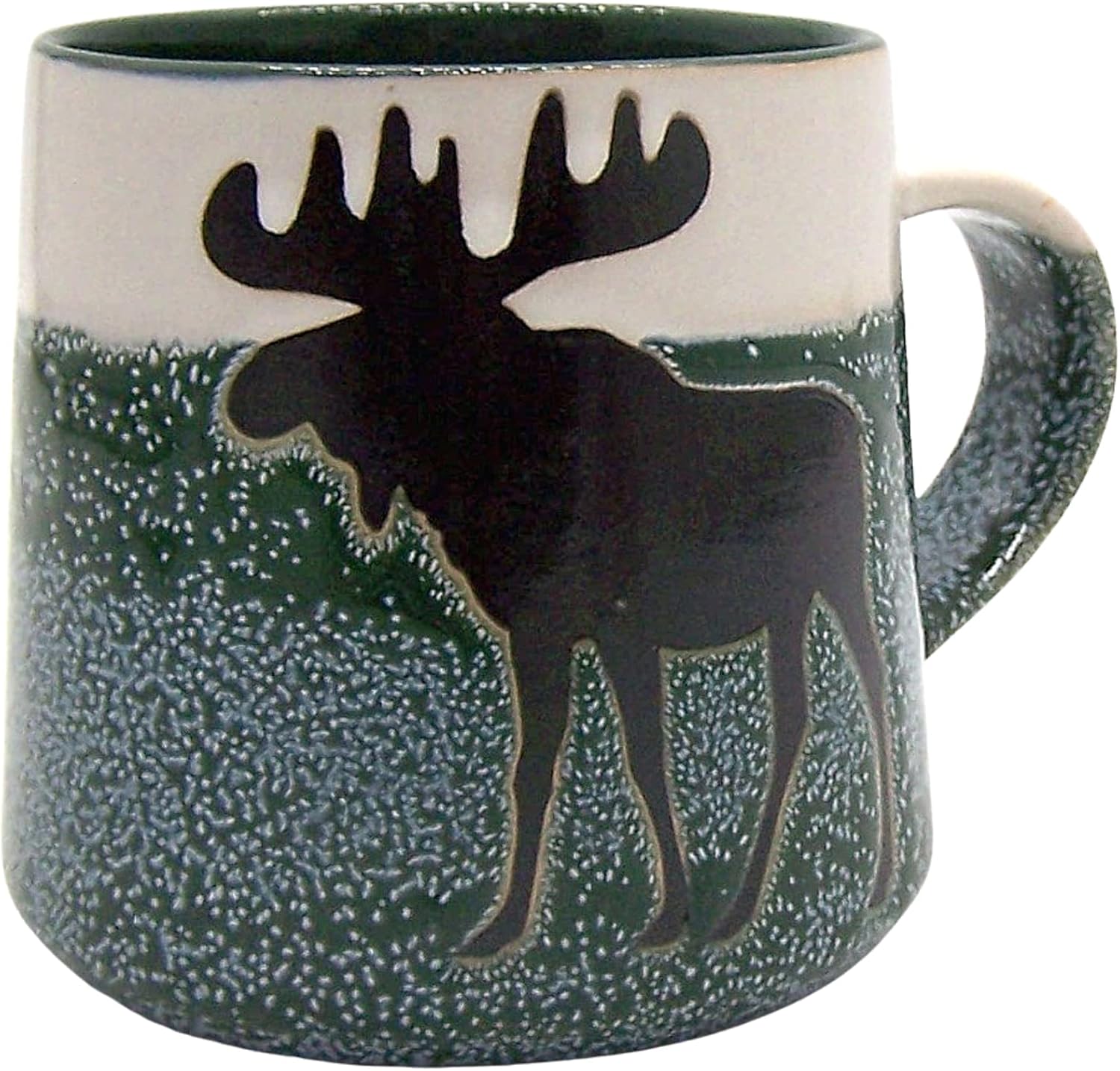 Cape Shore Artisan Coffee Tea Mug Cup, Moose, Gifts for Birthday Christmas, 16 Oz, Green
