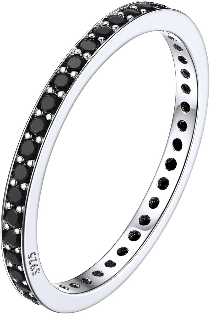 ChicSilver Personalized 2MM 925 Sterling Silver CZ Cubic Zirconia Stackable Ring Eternity Wedding Engagement Band for Women Size 4-12, Silver/Rose Gold Plated