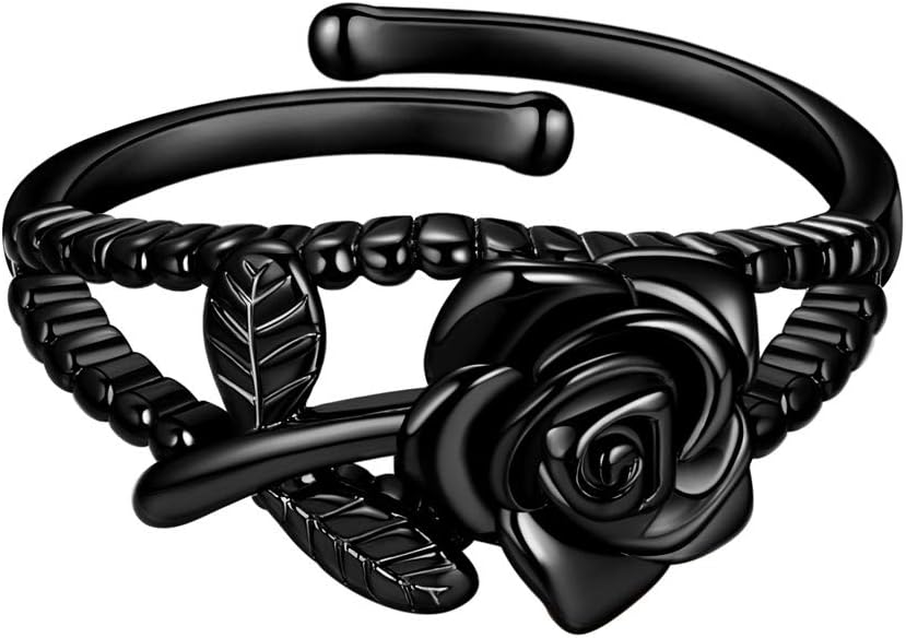 beautlace Rose Necklaces/Adjustable Rings Silver/18K Gold/Black Gun Plated Flower Pendant/Open Ring Elegant Jewelry Gifts for Women