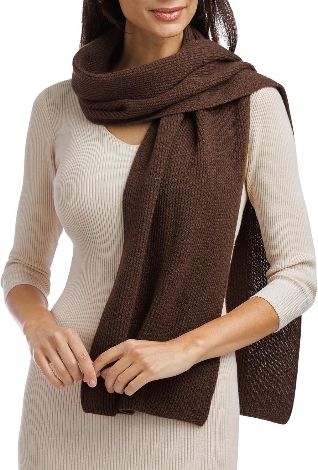 Fishers Finery Women's 100% Cashmere Ribbed Knit Winter Scarf | Black Label Box