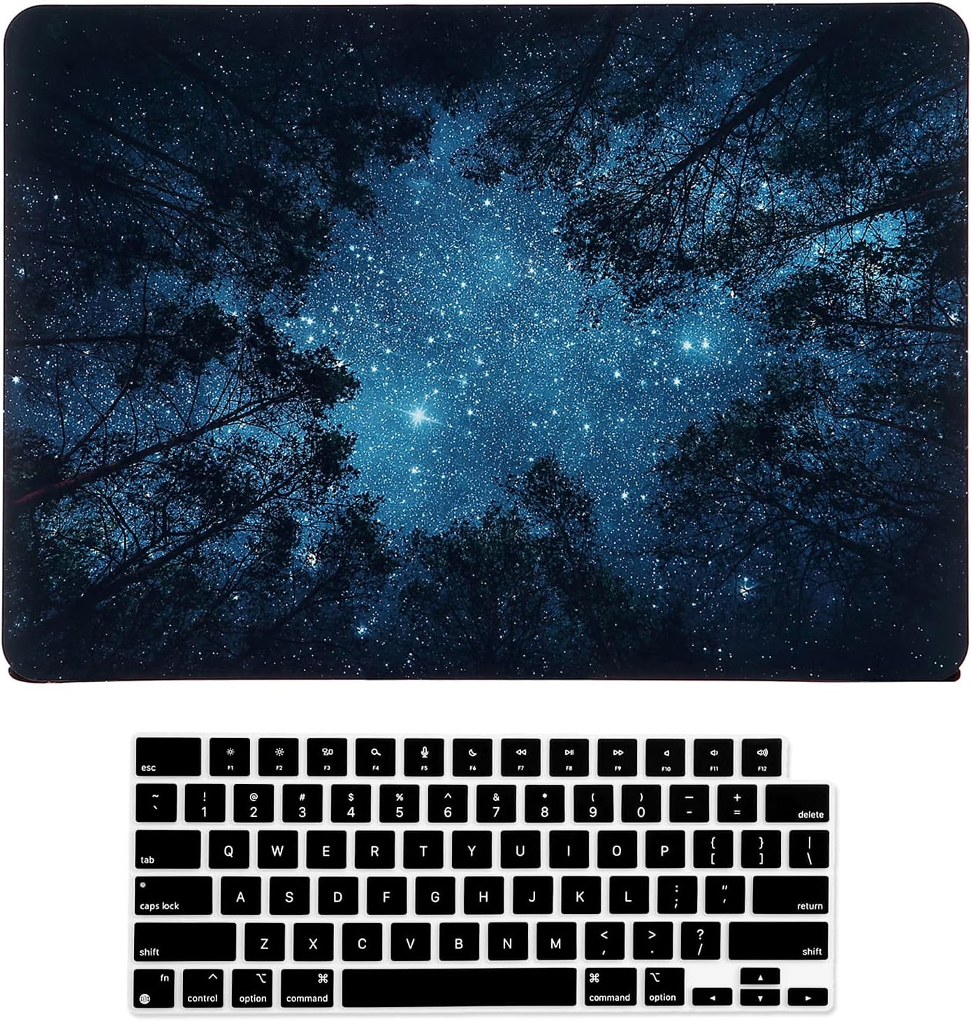 Case for MacBook Air 13.6 inch 2025 M4 A3240 M3 A3113 M2 A2681 2024 2023 2022 Release with Touch ID, Soft-Touch Plastic Hard Protective Cover&Keyboard Cover, Forest Starry