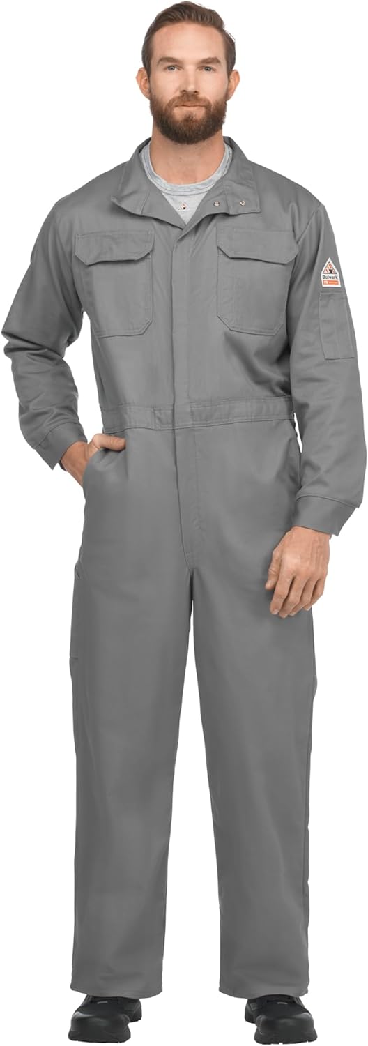 Bulwark FR mens Flame Resistant 9 Oz Twill Cotton Premium Concealed Snap Coverall