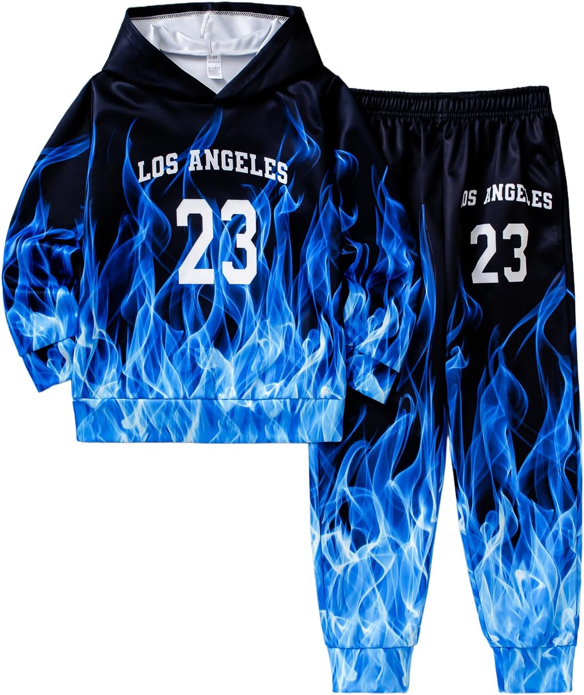 Boys Sweatsuits Two Pieces Pants Set 3D Fire Printed Hoodies Sweatshirt and Sweatpants Set Outfit Sets for Boy 5-14Y