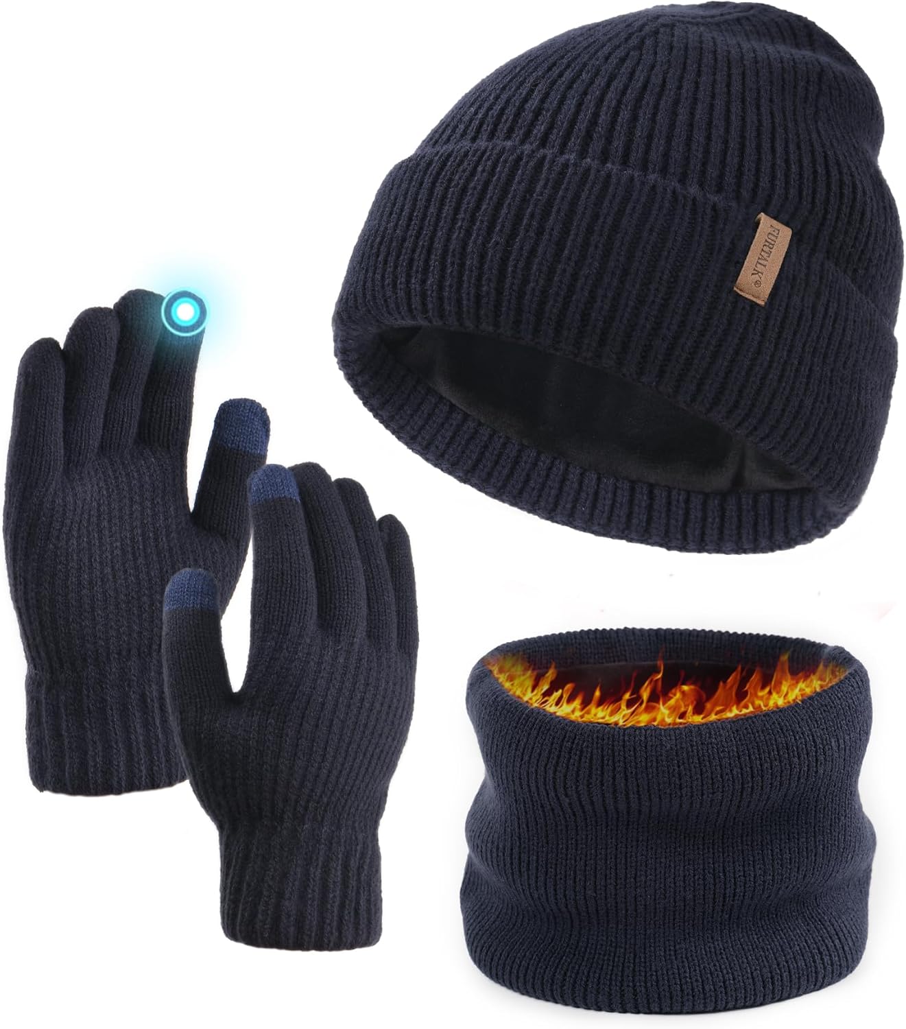 FURTALK Winter Knit Beanie Hat Sacrf Touch Screen Gloves Set Soft Fleece Lining Warm Beanie Unisex Winter Set