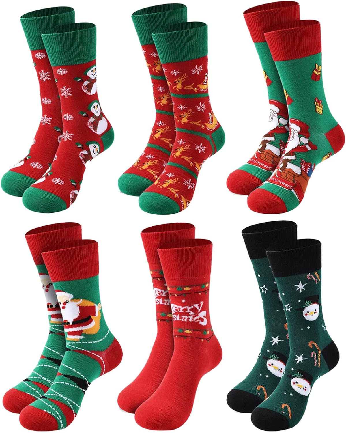 6 Pairs Christmas Socks for Women,Xmas Crew Socks Holiday Gift Novelty Socks US Size 6-13