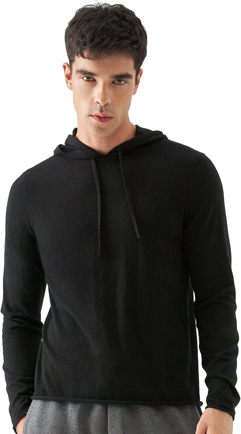 GreenMount Men's Lightweight Cashmere Hoodie Blend with Volcanic Ash Pullover Pocketless for Spring and Summer