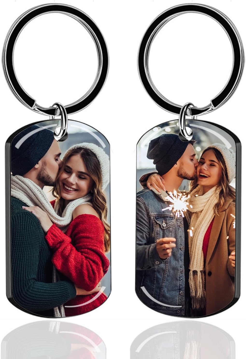 Personalized Custom Keychain with Picture - Double Sided Engraving Photo Text Customized Key Chains for Men Boyfriend
