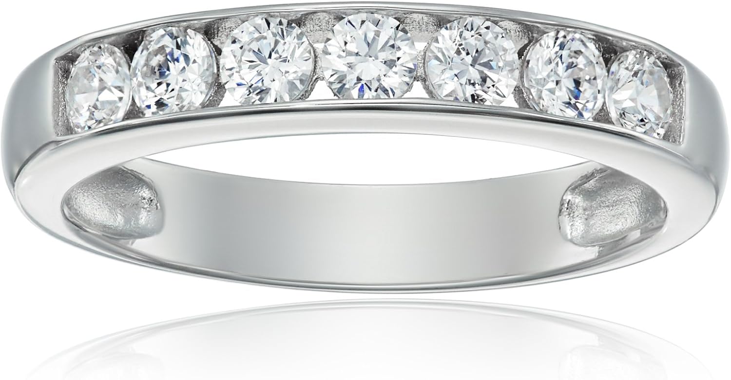 Amazon Essentials Sterling Silver Platinum-Plated Infinite Elements Zirconia Round Channel Band Ring, (previously Amazon Collection)
