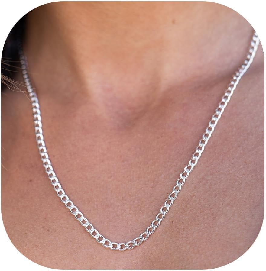 Avotto S925 Sterling Silver Cuban Chain Necklace for Women 3mm/5mm Thick Sturdy & Colourfast Women's Chain Necklaces Christmas Jewelry Gifts 16/18/20/22/24/Inch