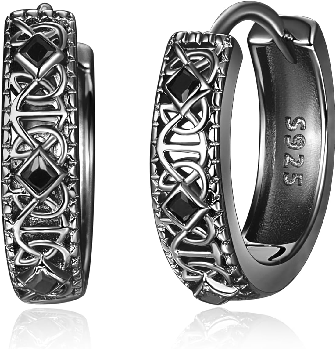 Black Hoop Earrings Men 925 Sterling Sliver Celtic Knot Earrings Vintage Earrings Small Hoop Earrings for Men Women