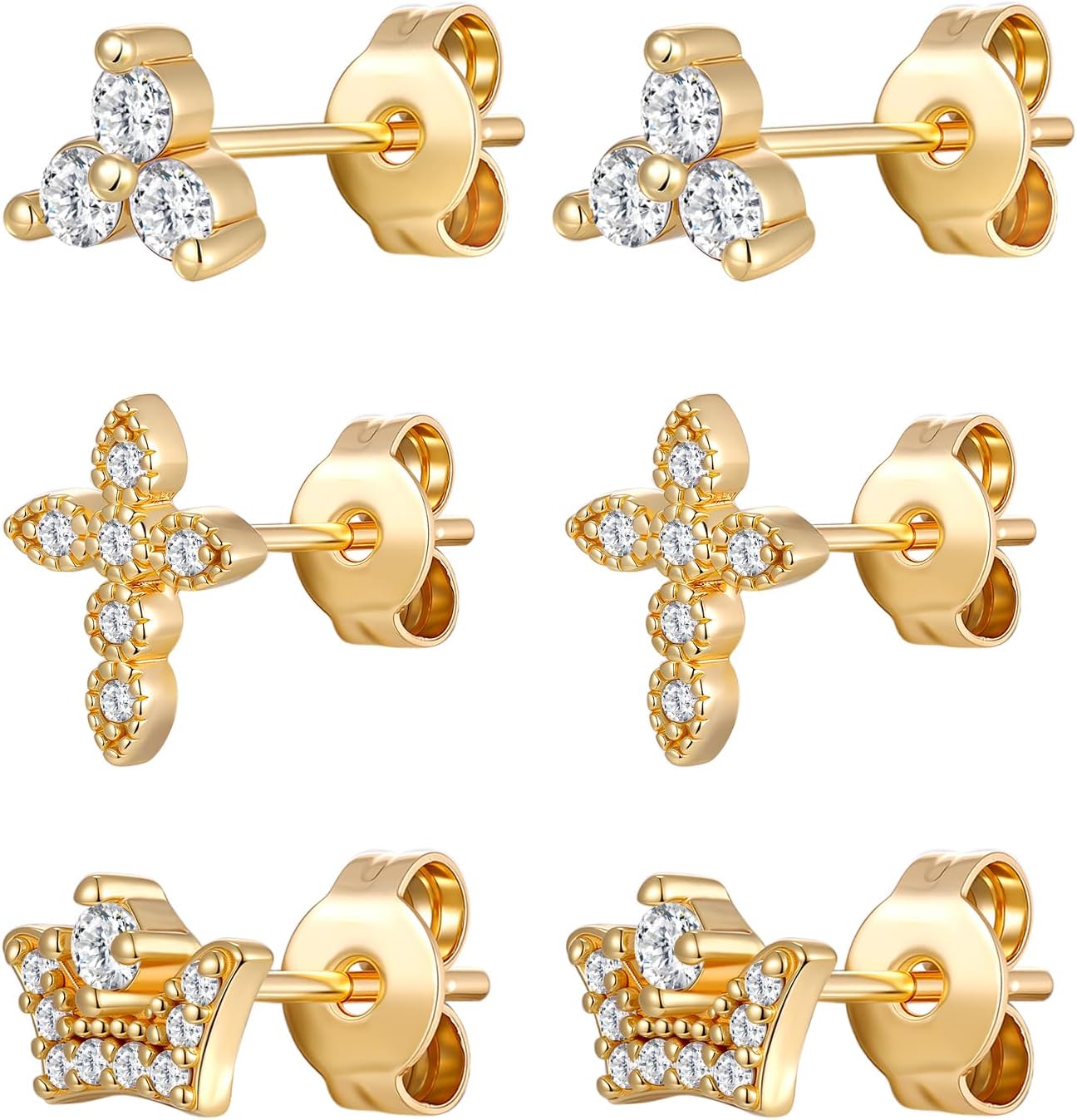 Gemsme 3 Pairs Small Gold Stud Earrings for Women/Men,18K Gold Plated Hypoallergenic Dainty Cubic Zirconia Studs Set for Jewelry Gift