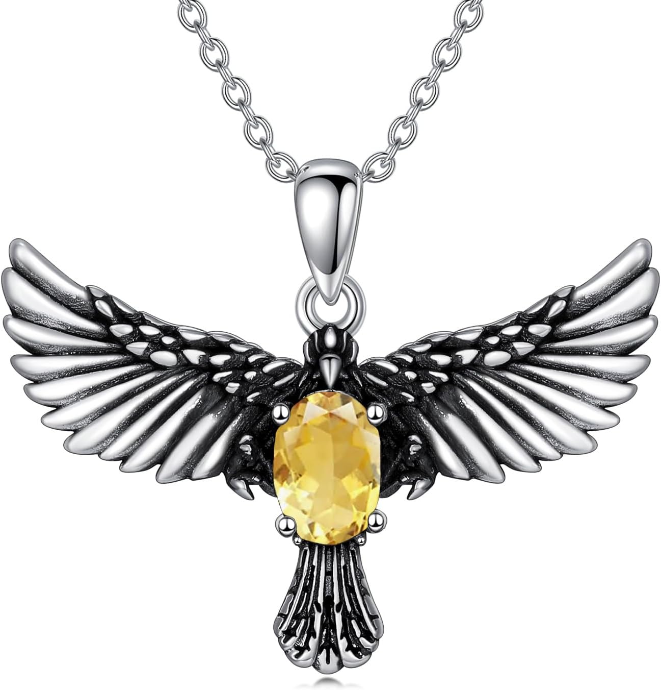 LONAGO Eagle Necklace for Women 925 Sterling Silver Hawk Eagle with Birthstone Pendant Necklace