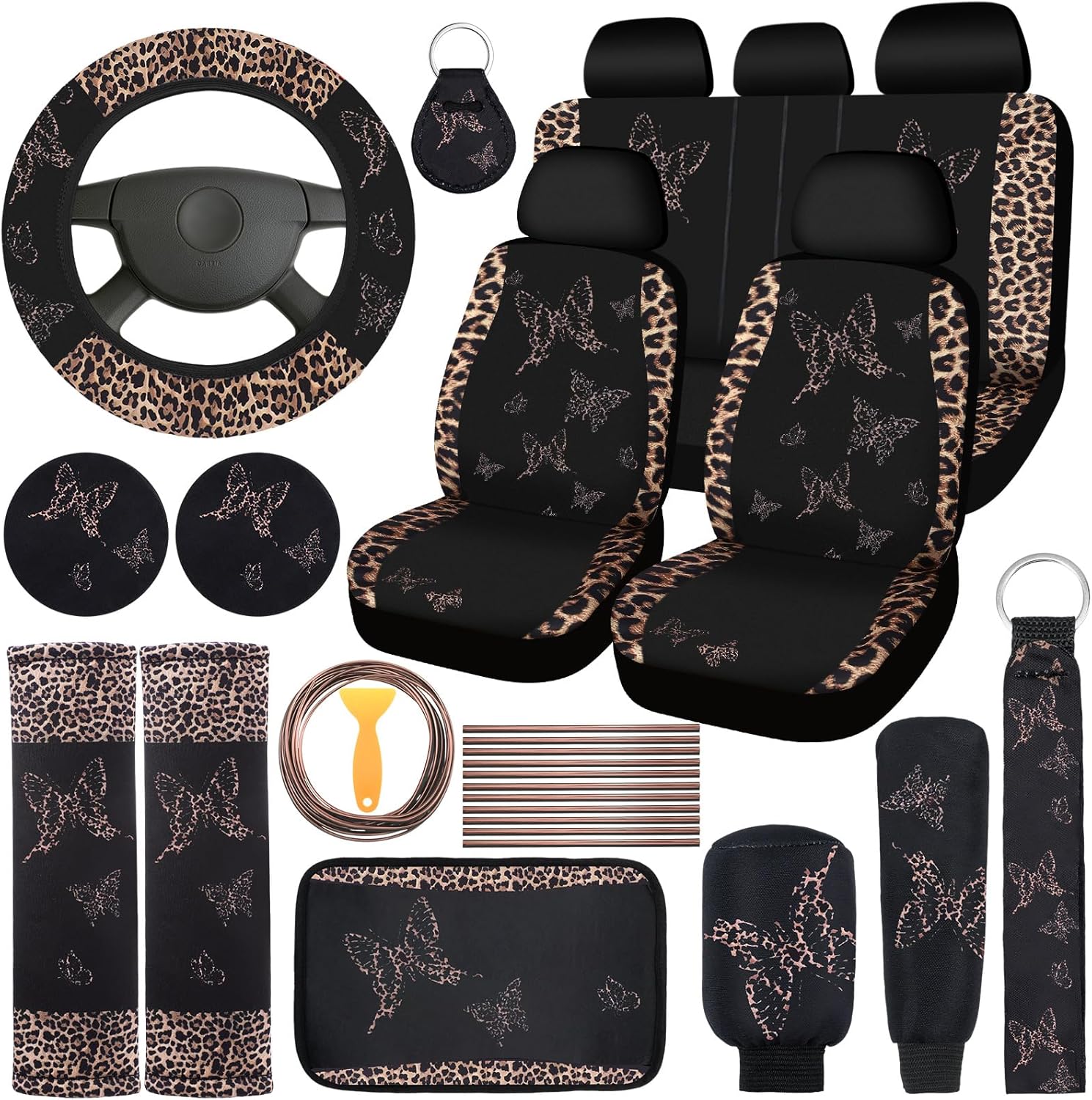 - Charming and Stylish Appearance: the brown leopard print car seat covers full set is decorated with lifelike butterflies, vivid and attractive, available in brown leopard print and black as the main colors, adding charm and elegance to your car, can easily attract others' attention