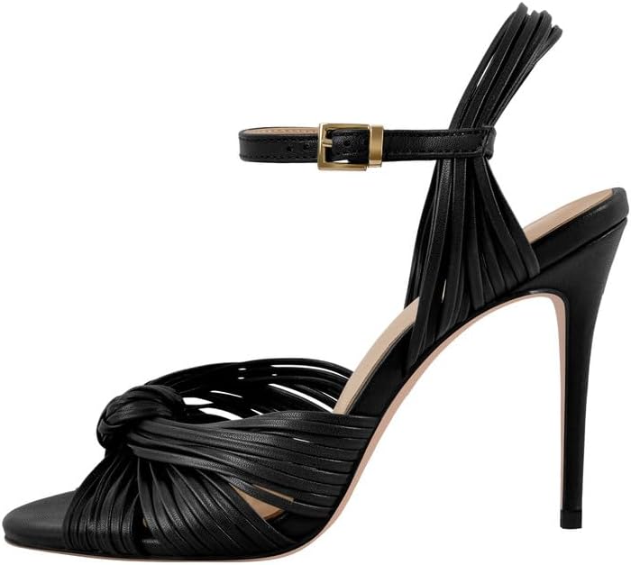 Richealnana Women's Strappy High Heel Sandals-Stiletto Heels with Braided Knot Design, Ankle Strap Open Toe Dress Shoes for Wedding, Party, Evening