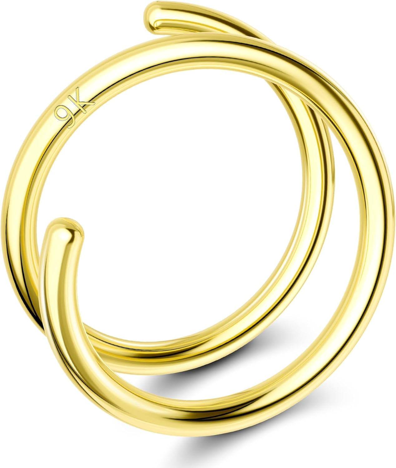 OUFER 18G Nose Rings, 9K Solid Gold Nose Rings Hoops, Double Hoop Nose Ring, Nostril Piercing Jewelry, Nose Piercing Jewelry For Women