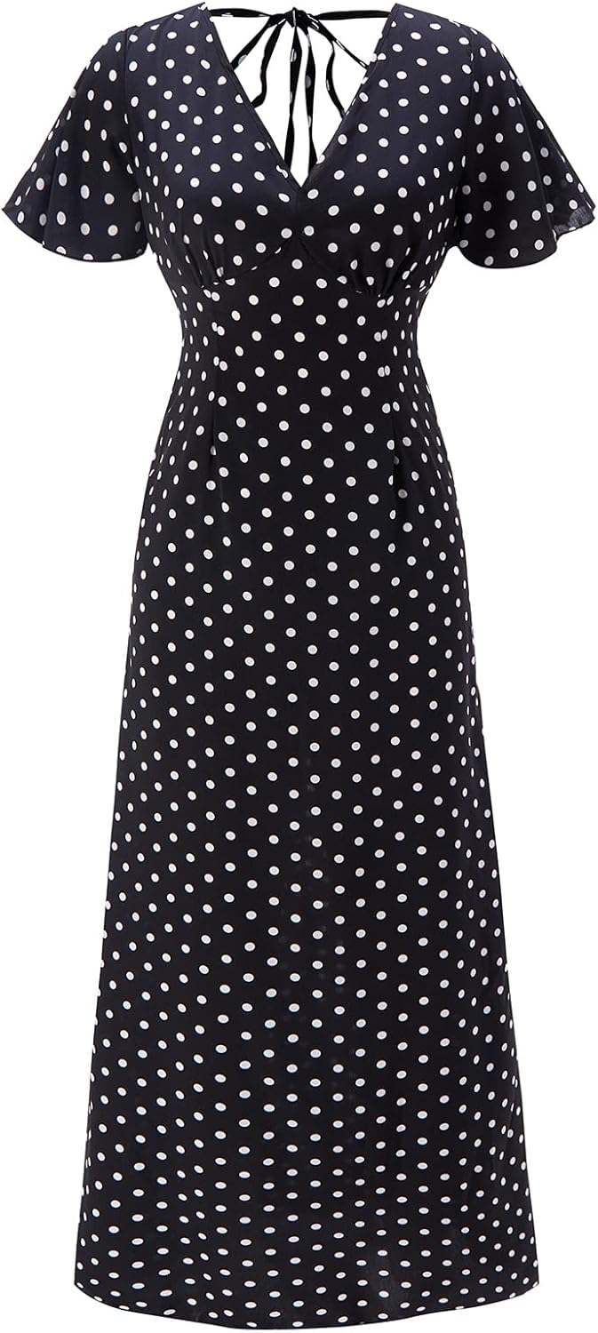 Women's Summer Polka Dots Maxi Dress Elegant Casual V Neck Tie Back A Line Going Out Dresses