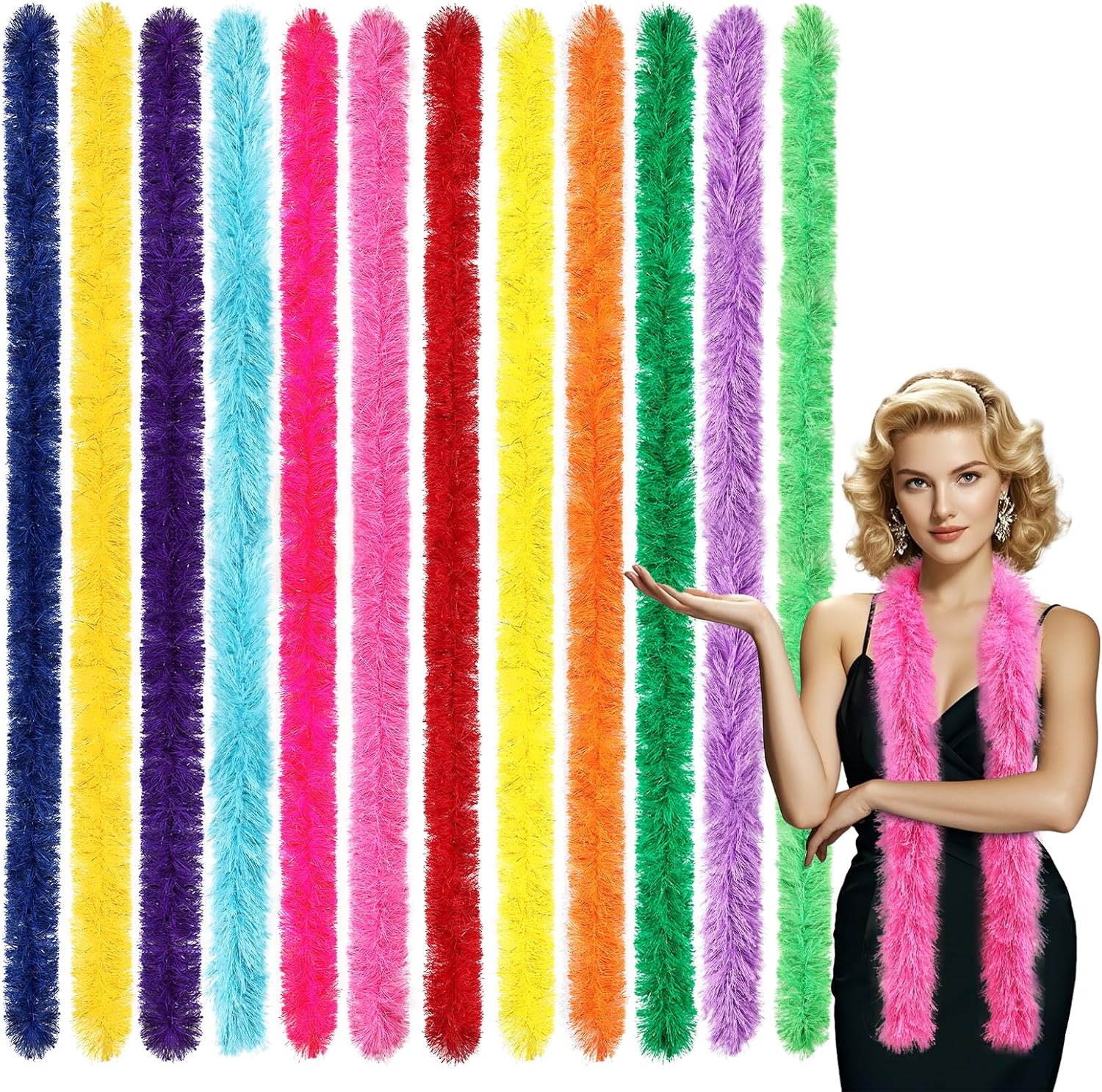 24pcs Feather Boas Bulk Artificial Fluffy Boas Costume Decor for Halloween Wedding Christmas Tea Party Supplies