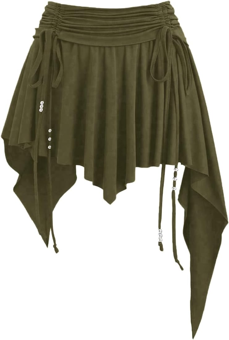 SweatyRocks Women's Asymmetrical Ruffle Skirt A Line Y2k Ruched High Waist Western Cowgirl Skirts