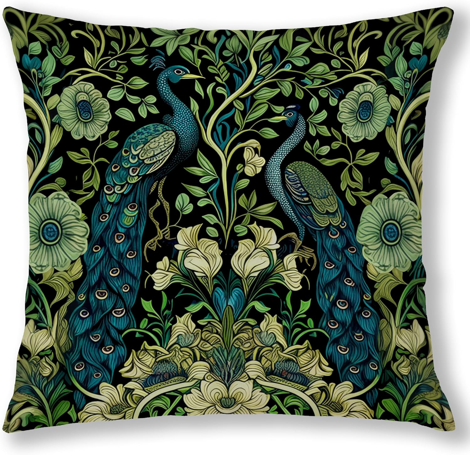 Vintage Dark Green Floral Peacock Pillow Covers 18x18, Peacock Decor, Rustic Cottagecore Botanical Flower Decorative Throw Pillow Covers Pillowcases for Living Room Home Bedroom