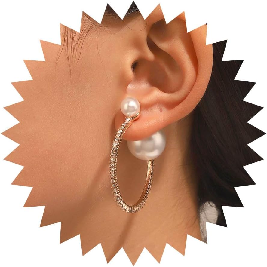 Rhinestone Gold Hoop Earrings Large CZ Diamond Hoop Earrings Faux Pearl Front Back Earrings Elegant Pearl Hoop Earrings Vintage Pearl Ear Jacket Earrings Bridal Jewelry for Women
