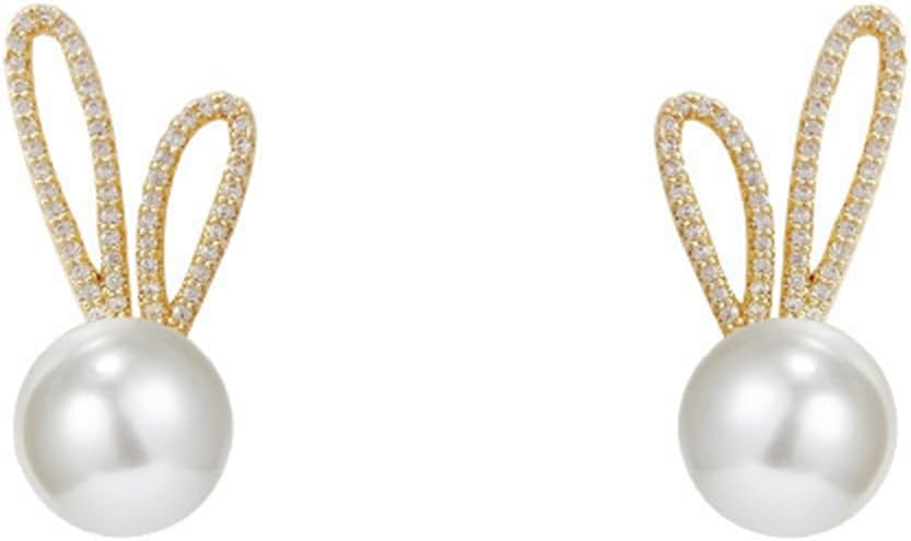 Rabbit Pearl Small Earrings Gold Plated Charm Easter Bunny Animal Pet Chic Crystal Cubic Zirconia Stud Earrings for Women Minimalist Birthday Festival Party Spring Holiday Jewelry Gifts