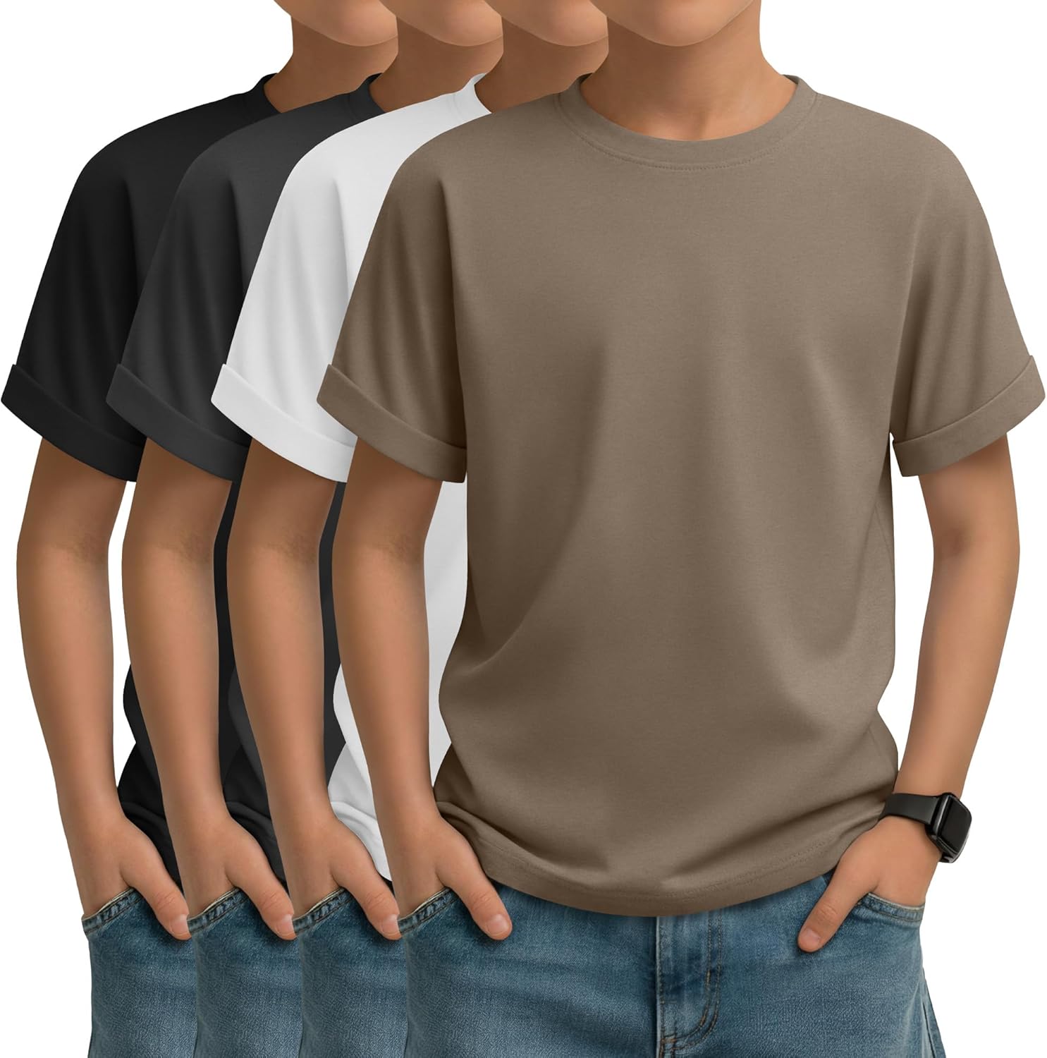 4 Pack Boys Short Sleeve Shirts Crewneck Kids Loose Fit Basic Casual Youth Soft Solid Plain Tees