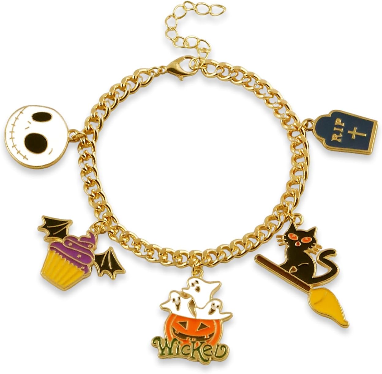 Halloween Charm Bracelet Horror Ghost Pumpkin Witch Hat Black Cat Gold Link Bracelets for Women,Halloween Jewelry Cosplay Costume Accessories (Cat)