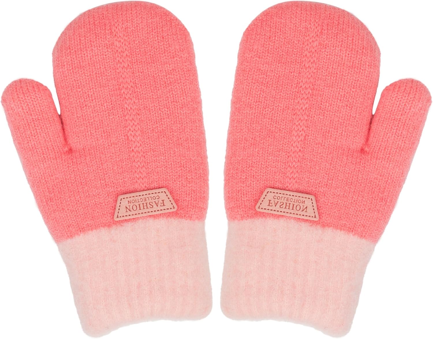 Winter Mittens for Kids Boys Girls Thick Knit Fleece Lind Warm Gloves Cold Weather 3-7 Years