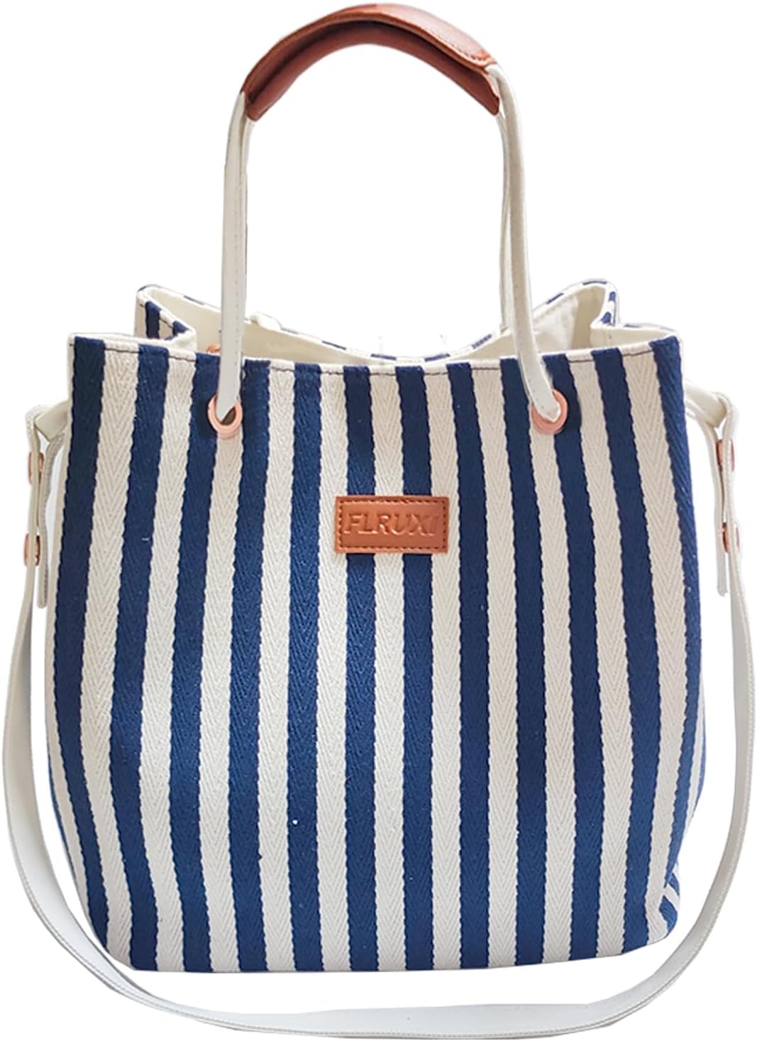 Women's Canvas Tote Bags, Medium Striped Beach Tote Bag for Holiday Travel Shopping Beach Gym Daily work