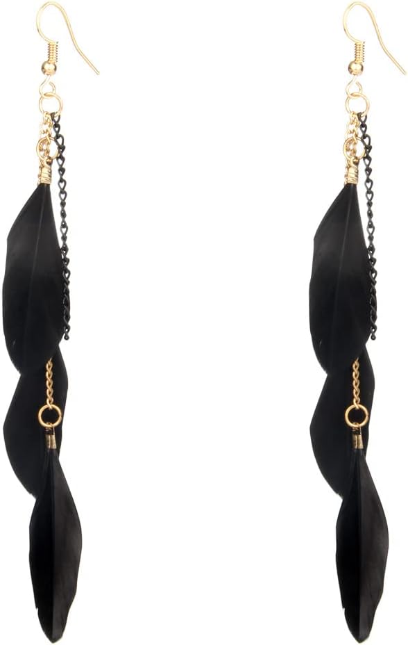 coadipress Boho Piercing Tassel Feather Long Chain Earrings Retro Lightweight Native Feather Dangle Drop Earrings for Women Bohemian Handmade Natural Feathers Earring Jewelry