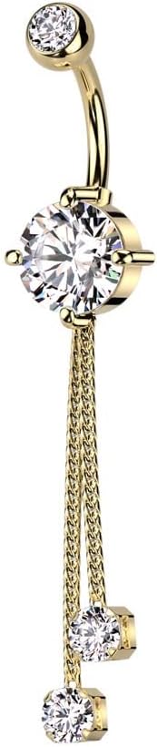 Pierced Owl 14GA 316L Stainless Steel Double Jeweled with Double CZ Crystal Chain Dangling Belly Button Ring