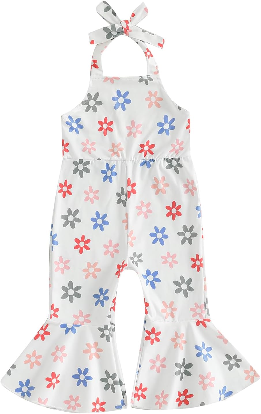Toddler Kids Baby Girls Backless Suspenders Jumpsuit Bell Bottoms Pants Romper Summer Halter Overalls Flower Outfit